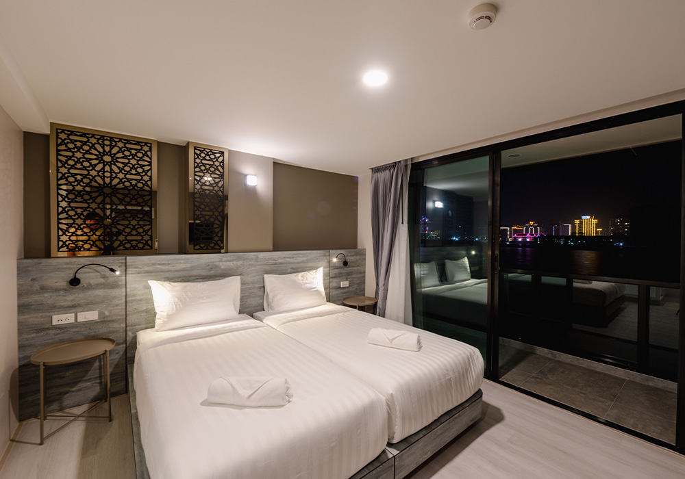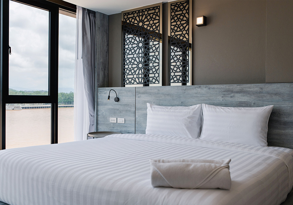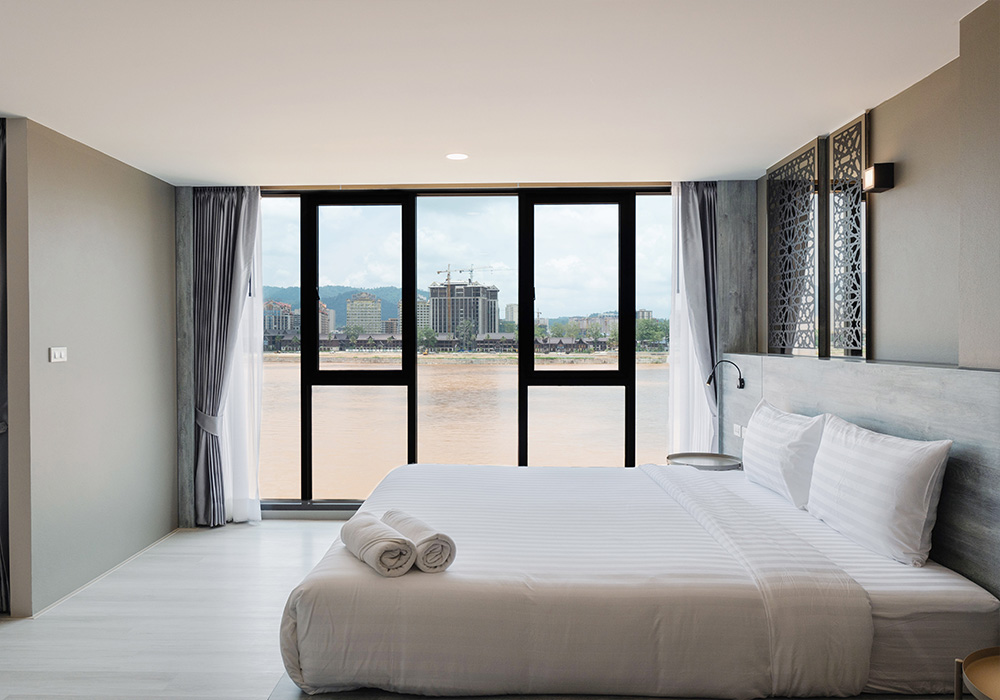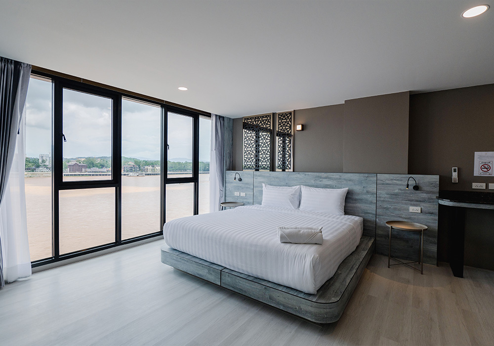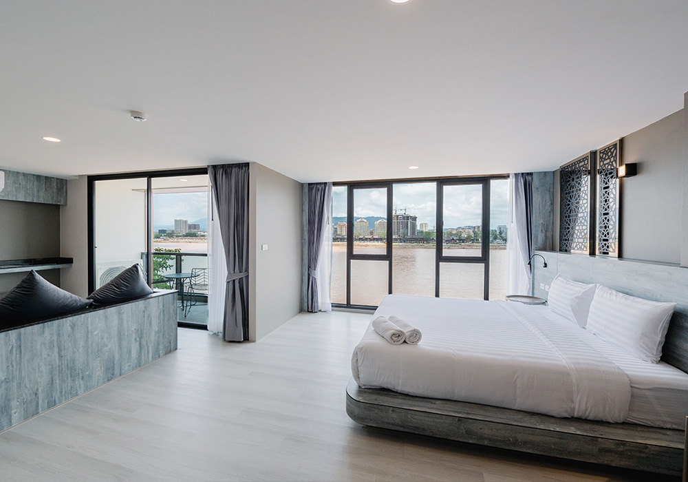 โรงแรมตั้งอยู่ ติดริมแม่น้ำโขง ออกแบบภายใต้แนวคิด “พักผ่อนท่ามกลางธรรมชาติ” เพื่อให้ผู้เข้าพักได้สัมผัสบรรยากาศสงบของสายน้ำ พร้อมชมวิวภูเขาและฝั่งประเทศเพื่อนบ้าน “อาณาจักรคิงส์โรมัน” เขตปกครองพิเศษ สปป.ลาว ที่มองเห็นได้อย่างชัดเจน โดยเฉพาะยามค่ำคืนที่ประดับประดาด้วยแสงไฟจากตึกฝั่งลาว งดงามน่าทึ่ง ห้องพักทุกห้องหันหน้าออกสู่แม่น้ำโขงและวิวภูเขา เปิดรับแสงธรรมชาติและชมพระอาทิตย์ขึ้นเหนือสายน้ำได้จากในห้อง ที่พักเล็ก ๆ ริมโขงแห่งนี้ ราคาเริ่มต้นเพียงหลักร้อย แต่วิวหลักล้าน พร้อมอาหารเช้าอิ่มอุ่นทุกวัน โรงแรมมีห้องพักหลากหลายประเภท รองรับทั้งคู่รัก เดี่ยว กลุ่มเพื่อน หรือครอบครัว พร้อมสิ่งอำนวยความสะดวกครบครัน ภายในห้องพักสะอาด กว้างขวาง และตกแต่งเรียบง่ายแต่สบายตา “ตอบทุกโจทย์ของนักเดินทาง” อย่างแท้จริง